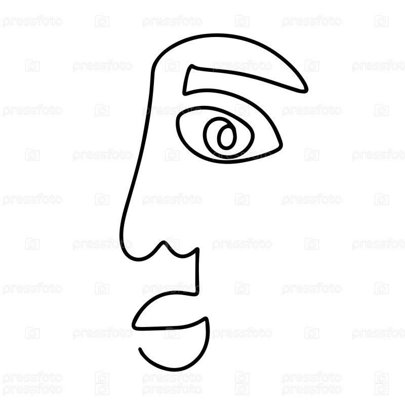 Непрерывный рисунок линии. Абстрактный женский портрет. Векторная иллюстрация в одну линию. Женский линейный контур, изолированный на белом. Минимальный контурный силуэт