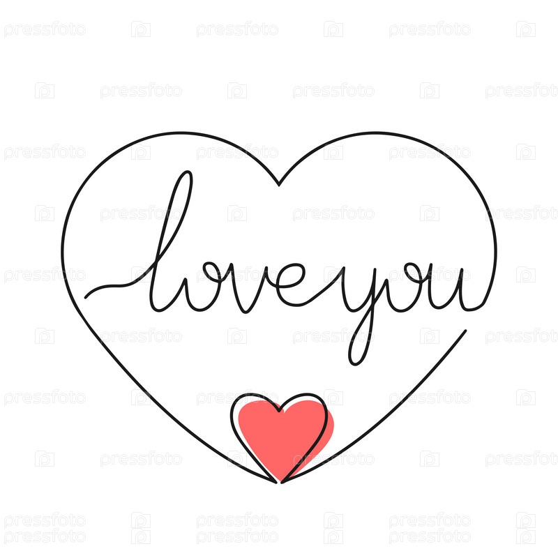 Плакат с надписью Я люблю тебя в своем сердце. Рисунок одной линией. Логотипы и эмблемы для приглашения, поздравительной открытки, принтов и плакатов. Векторная иллюстрация