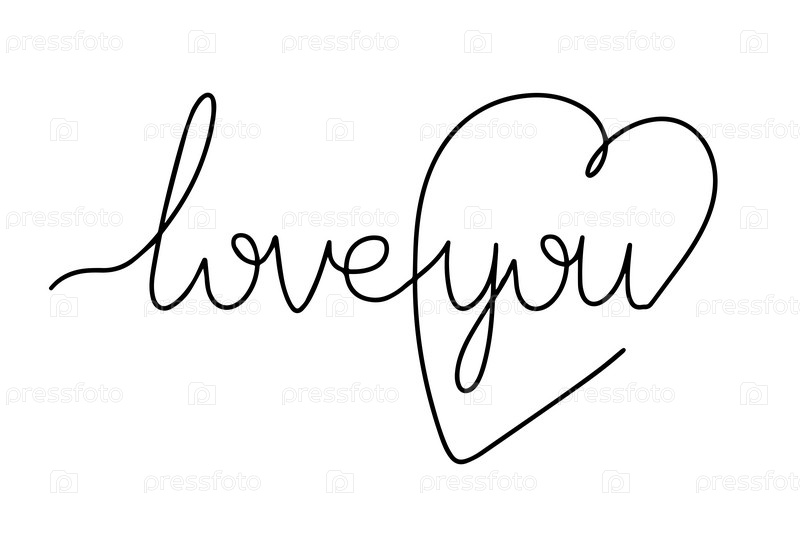 Плакат с надписью Я люблю тебя в своем сердце. Рисунок одной линией. Логотипы и эмблемы для приглашения, поздравительной открытки, принтов и плакатов. Векторная иллюстрация