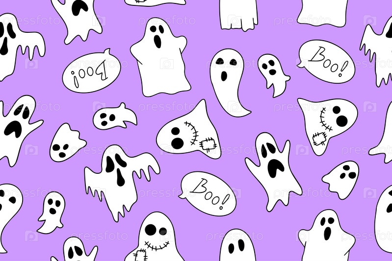 Бесшовный узор милых призраков Хэллоуина в стиле каракули. Счастливого Хэллоуина. Костюм ужасов. Вектор