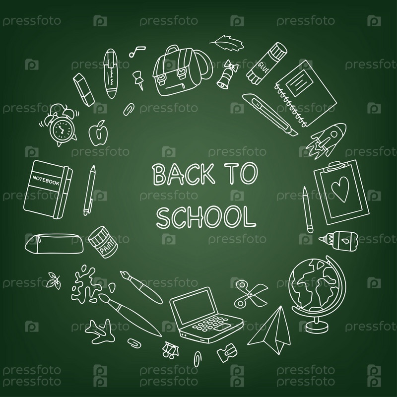 Баннер «Назад в школу». Набор рисунков канцелярских принадлежностей, нарисованных от руки. Школьные принадлежности в стиле каракули. Векторная иллюстрация. Вектор