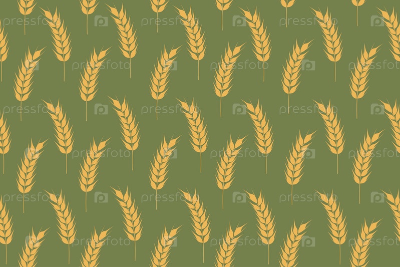 Коллекция золотых спелых колосков пшеницы. Сельскохозяйственный символ, производство муки. Векторный силуэт пшеницы. Иллюстрация на зеленом фоне