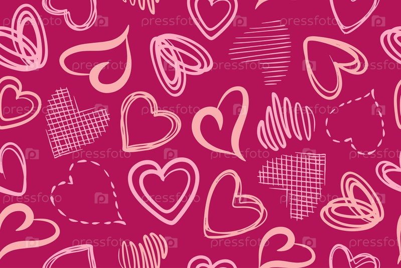 Бесшовный узор из сердец разных форм. Современный абстрактный фон с красивыми сердцами. Векторная иллюстрация