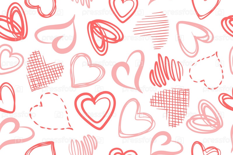 Бесшовный узор из сердец разных форм. Современный абстрактный фон с красивыми сердцами. Векторная иллюстрация