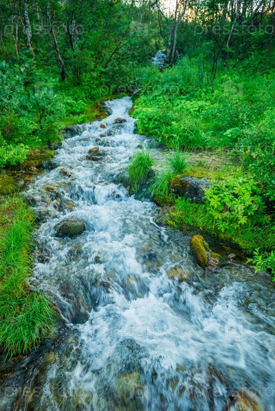 Красивая бурная горная река изумрудных и голубых оттенков течет по скалам, вид сверху