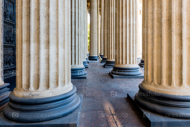 Исторические гранитные колонны собора, детали, полосы, фактурный фон
