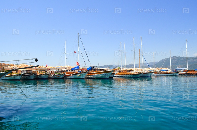 Корабли и яхты в порту у побережья Турции