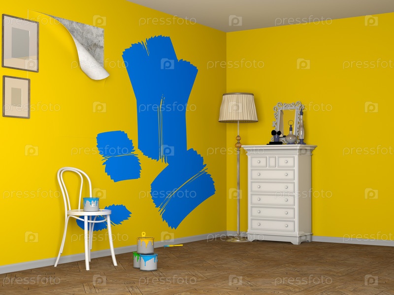 На снимке запечатлена комната с недавно окрашенными яркими стенами,