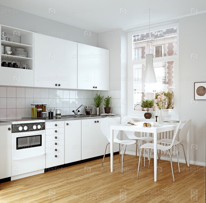 Современный уютный интерьер кухни. 3d визуализация концепции дизайна