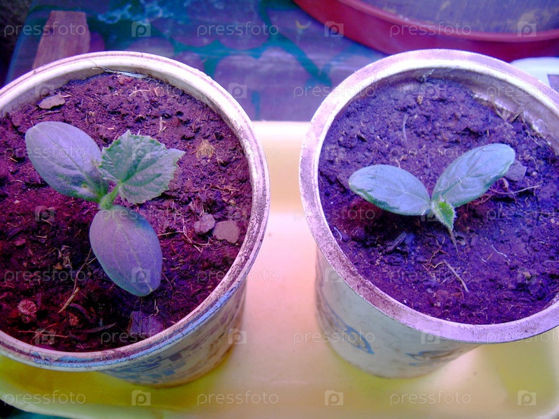Рассада огурцов под фитолампой