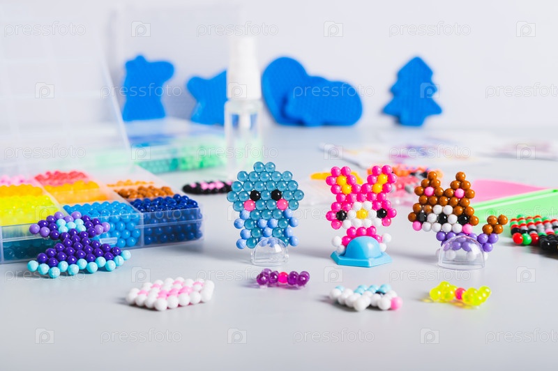 Детские игрушки из аквабисера и набор для изготовления на столе