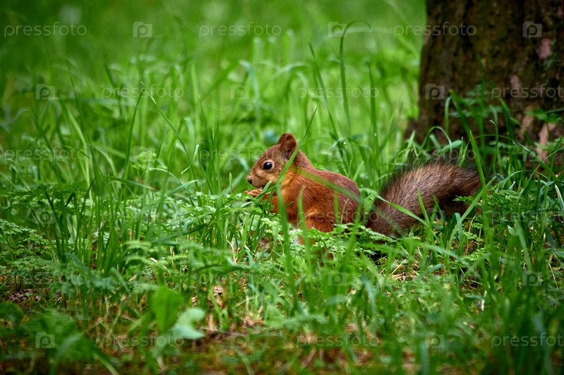 Белка сидит в траве