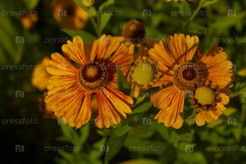В саду цветет гелений (лат. Helenium).Гелений род однолетних и многолетних травянистых растений семейства сложноцветковых