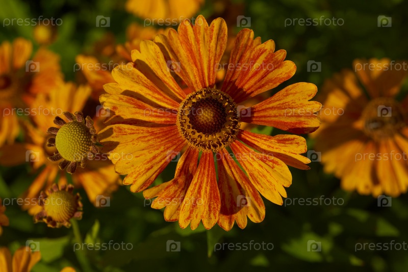 В саду цветет гелений (лат. Helenium).Гелений род однолетних и многолетних травянистых растений семейства сложноцветковых