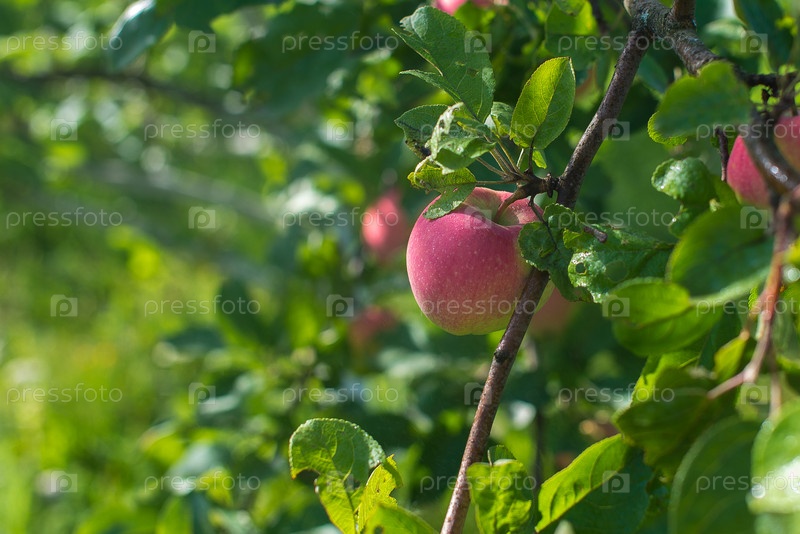 Спелое яблоко висит на ветке