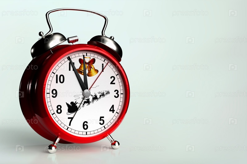 Наступило время Рождества. будильник на светло-зеленом фоне. 3D-рендеринг