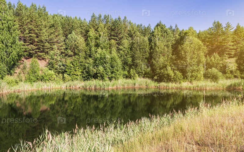 Летний природный пейзаж. Лесное озеро