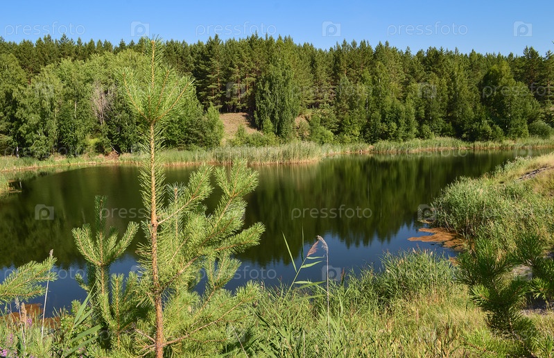Пейзаж с лесным озером. Красивый природный фон