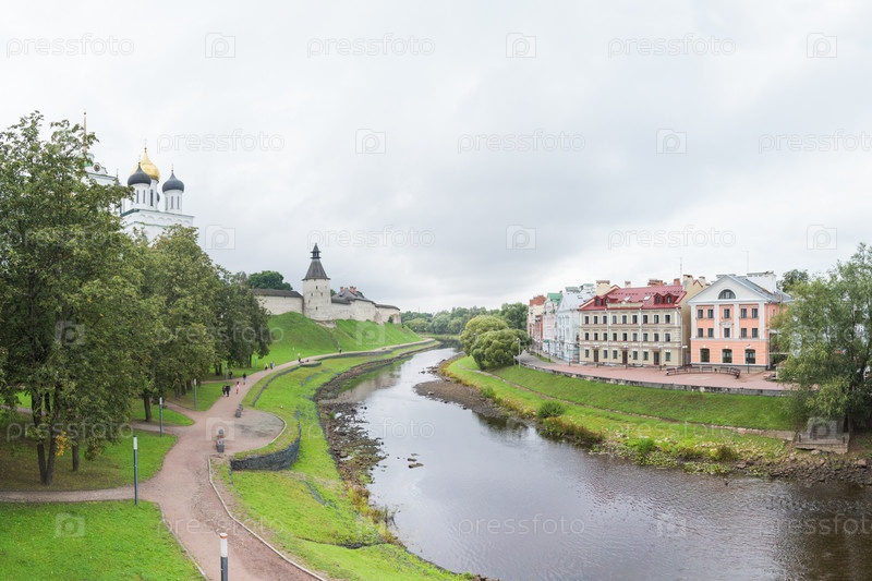 Вид с Троицкого моста на Кремль. Псков, Россия
