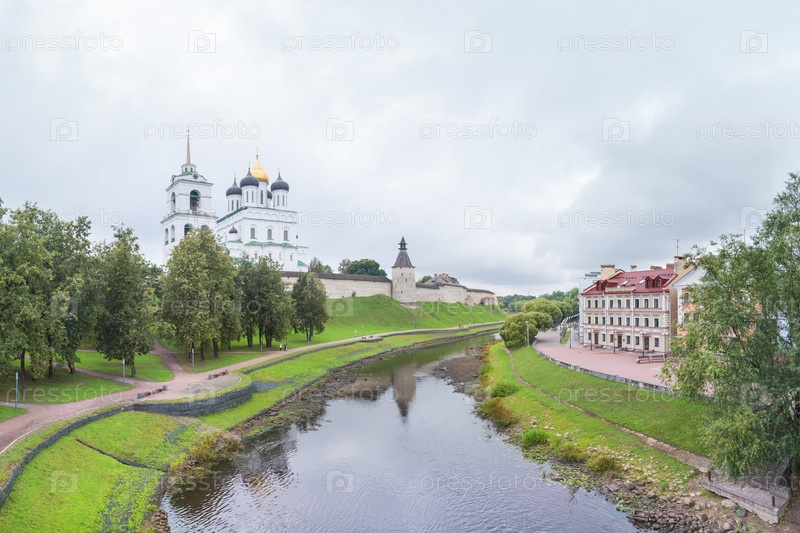 Вид с Троицкого моста на Кремль. Псков, Россия