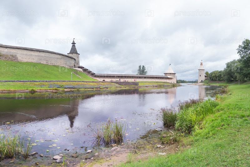 Вид на реку Пскову и Кремль. Псков, Россия