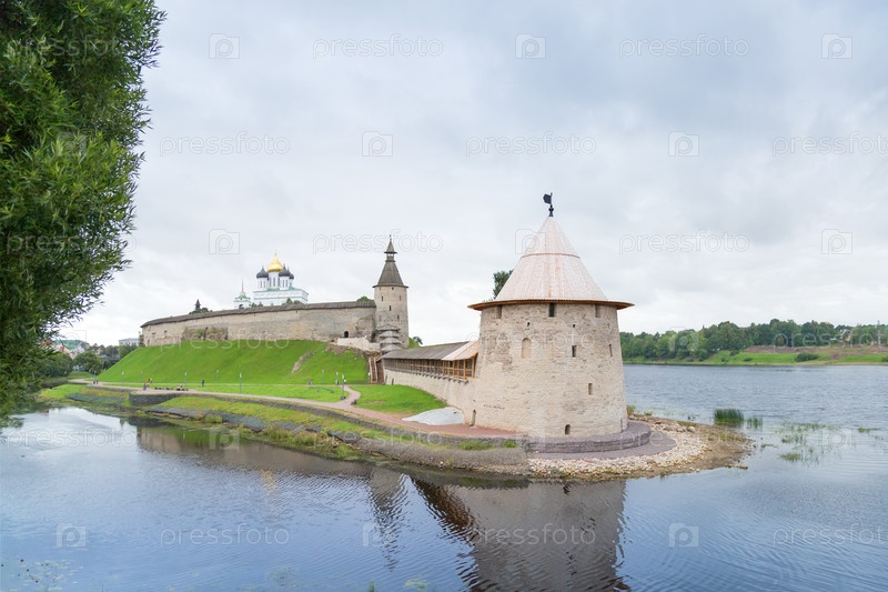 Вид на Кремль, реки Пскова и Великая. Псков, Россия