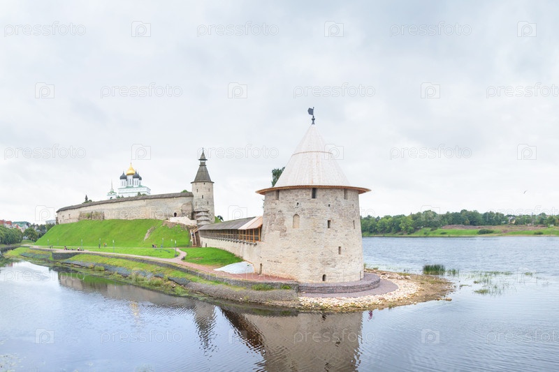 Вид на Кремль, реки Пскова и Великая. Псков, Россия