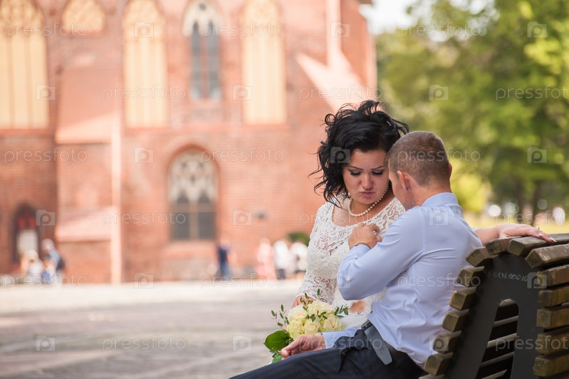 Молодожены на фоне старинных зданий