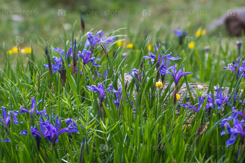 Горные цветы на зеленом поле Кыргызстана