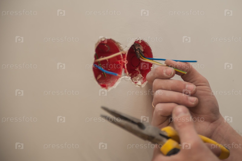 Монтаж, установка выключателя и розетки. Зачистка кабеля перед подключением