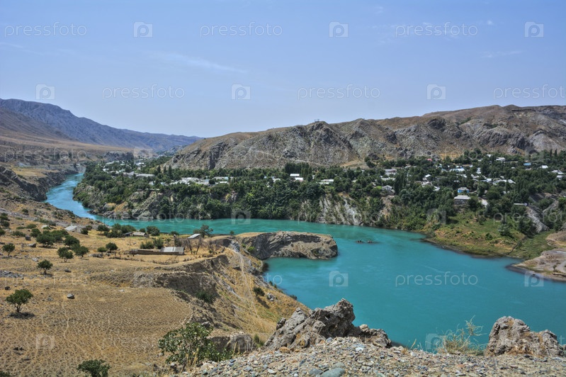 Закат на реке Ташкомур, Ошская область, Кыргызстан, выборочный фокус