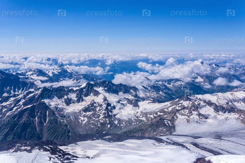Вид с вершины горы, красивый горный пейзаж в голубой атмосферной дымке