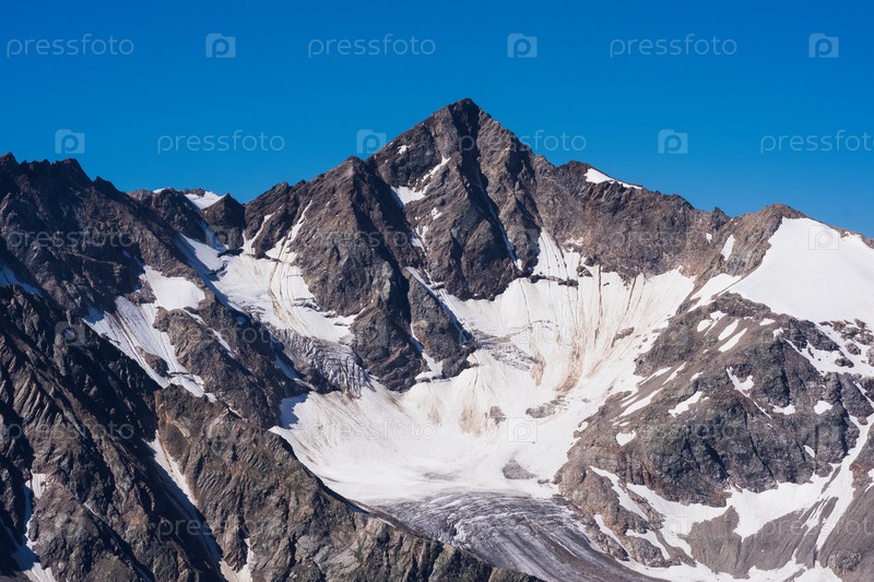 Высокогорный ландшафт, вид на ледники на горных вершинах