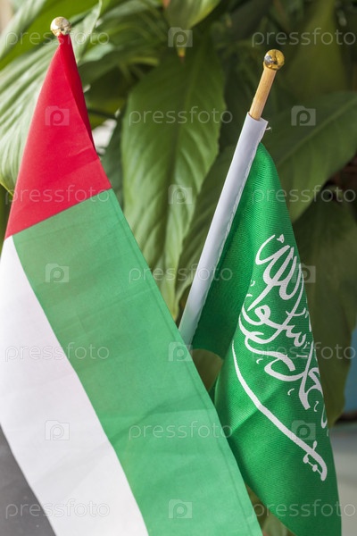 Миниатюрные ручные флаги Саудовской Аравии и Объединенных Арабских Эмиратов. Страны
