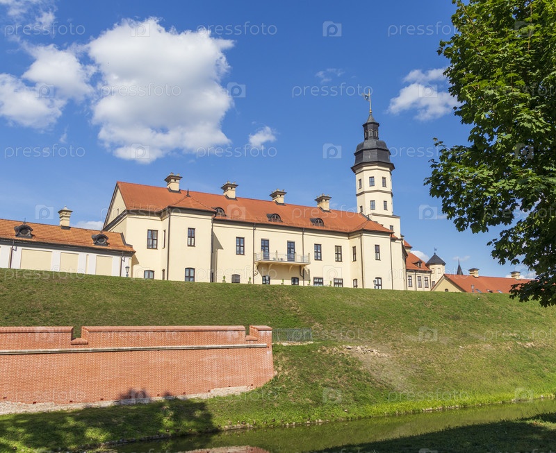 Несвиж, Беларусь - 08.08.2024 - Снимок известной архитектурной достопримечательности, замка Радзвиллов. Достопримечательность