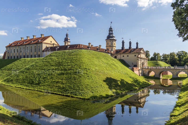 Несвиж, Беларусь - 08.08.2024 - Снимок известной архитектурной достопримечательности, замка Радзвиллов. Достопримечательность
