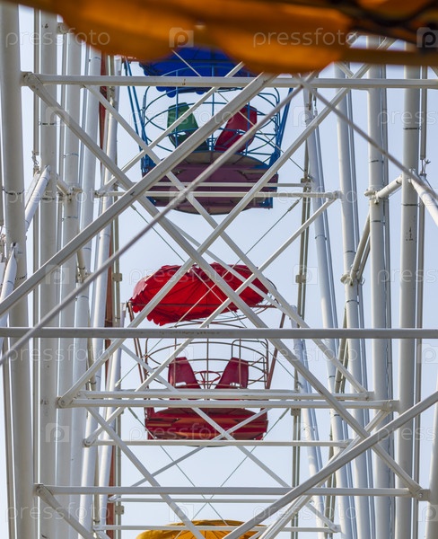 Крупные планы кабинок колеса обозрения. Развлечения