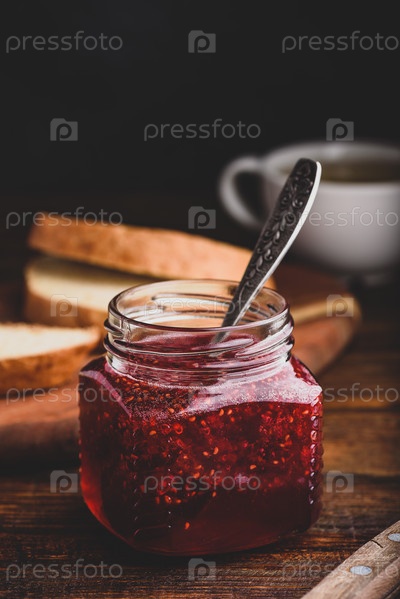 Банка домашнего малинового варенья