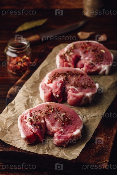 Стейки из сырой свиной корейки с разными специями