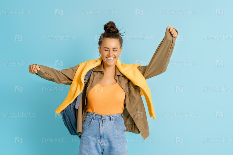 Молодая женщина на ярком цветном фоне