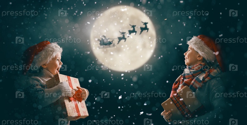 Дети с рождественскими подарками