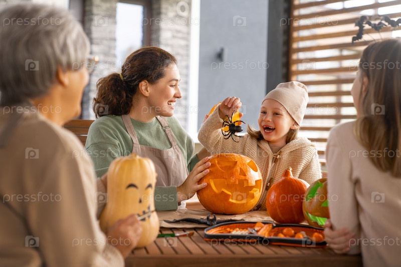 Семья готовится к Хэллоуину