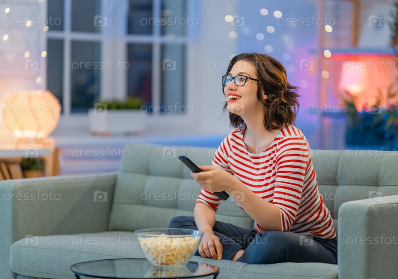 Женщина смотрит телевизор