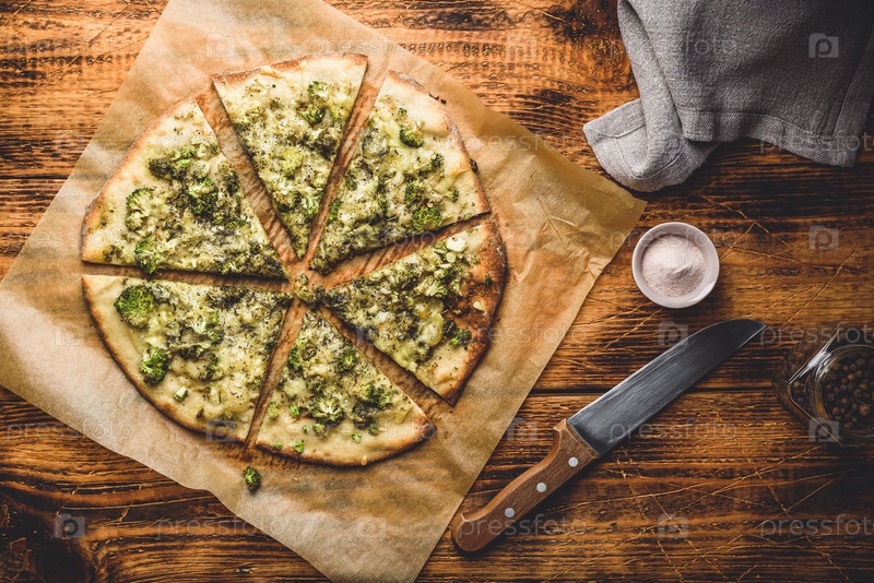 Пицца с брокколи, зеленью и пармезаном