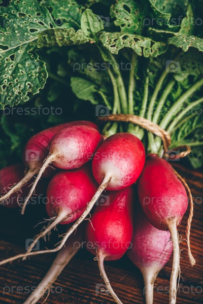 Пучок свежей красной редьки
