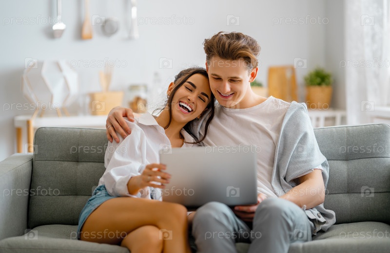 Молодая пара пользуется ноутбуком