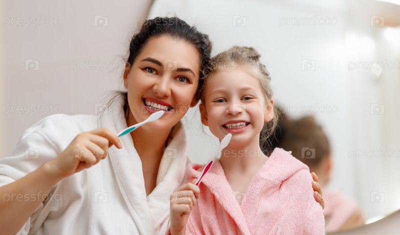 Семья чистит зубы