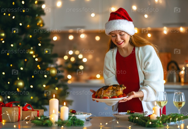 Женщина готовит рождественский ужин