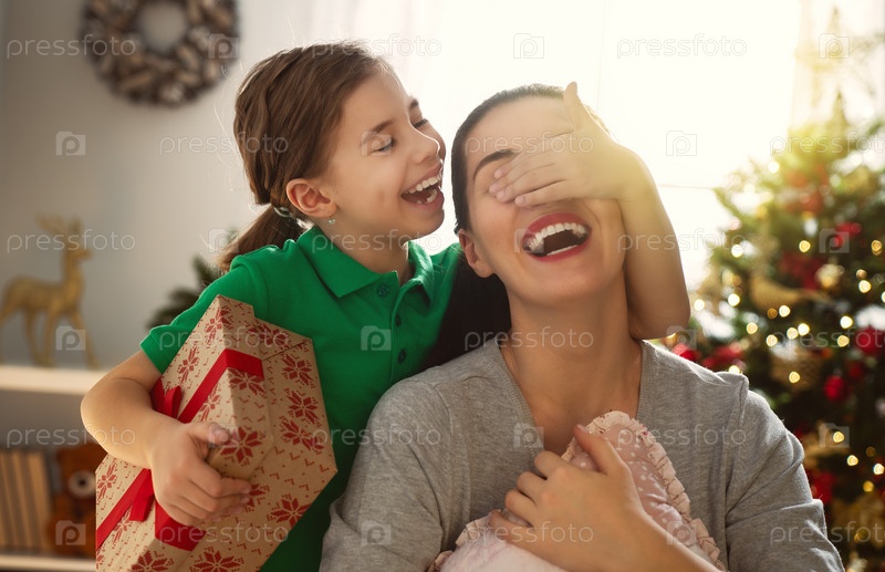 Мама и дочь обмениваются подарками