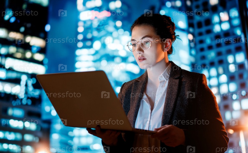 Бизнес-леди работает на ноутбуке